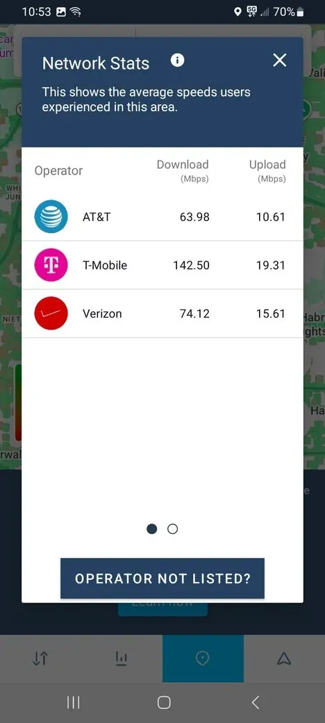 Because the user averages and proximity of the cell towers (or lack there of) were so close between the two test locations, I only did one Speed Test as the differences would have been negligible either way.